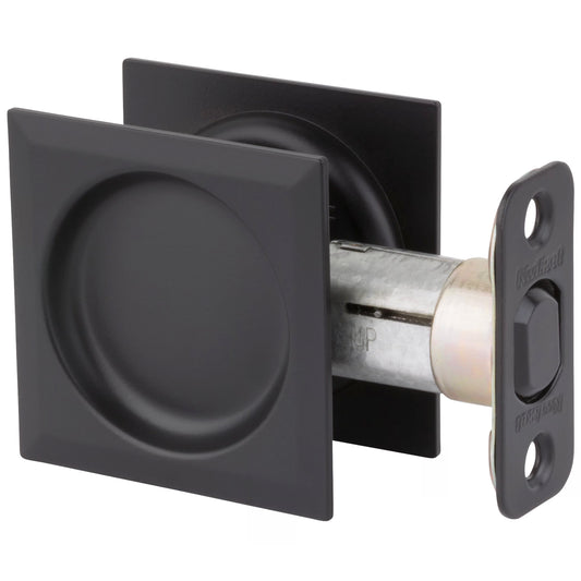 Kwikset 93340 Square Pocket Door Lock in Matte Black Finish