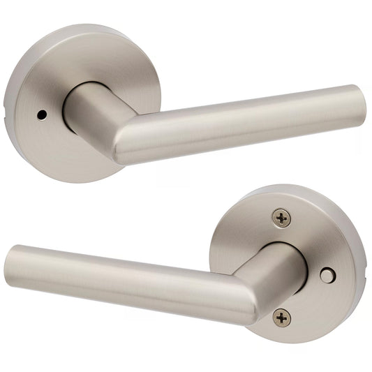 Kwikset Milan Round Lever Privacy Handle for Interior Doors, Satin Nickel