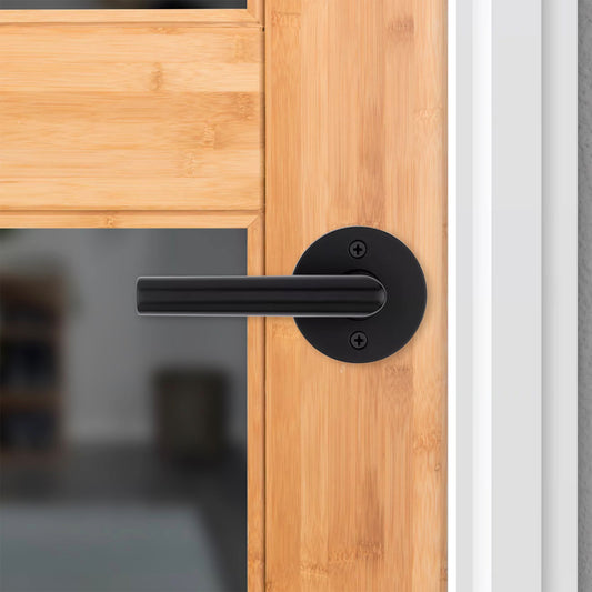 Kwikset Round Milan Lever Handle for Bedrooms and Bathrooms in Matte Black Finish