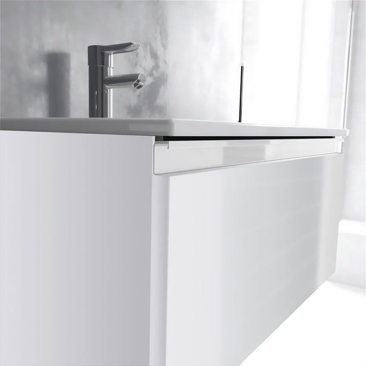 Baden Haus "Glass" 24" Two-Drawer Wall-Hung Bathroom Vanity Cabinet with Top/Sink, Gloss White