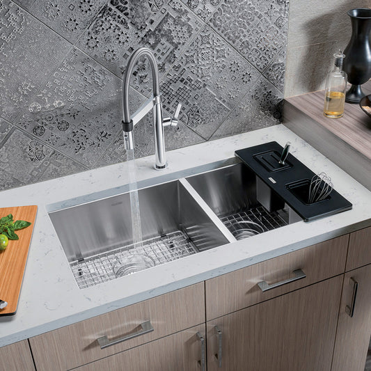 Blanco Quatrus R0 Stainless Steel Undermount Double Bowl Kitchen Sink, 60/40, 33x18"