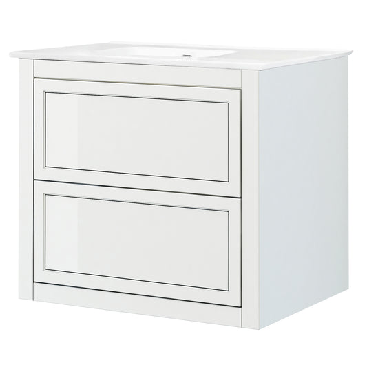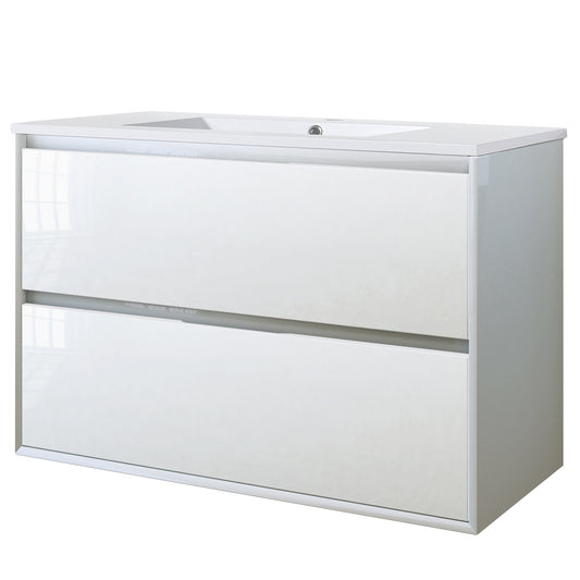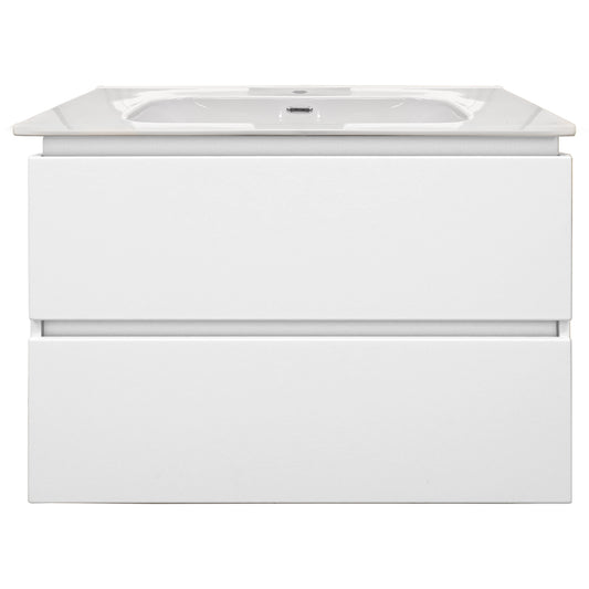 Baden Haus "Glass" 24" Two-Drawer Wall-Hung Bathroom Vanity Cabinet with Top/Sink, Gloss White