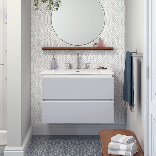 Baden Haus Retro 30" Wall Mount Two Drawer Bathroom Vanity Cabinet with Sink, Matte White