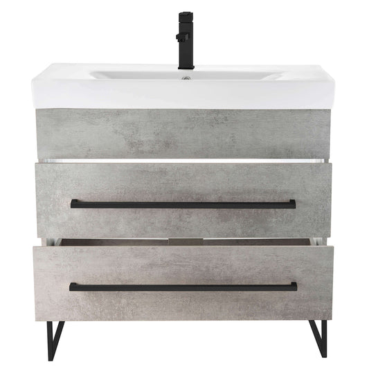 Baden Haus AVRIL Bathroom Vanity with Sink and 2 Smooth Closing Drawers, Matte Light Gray