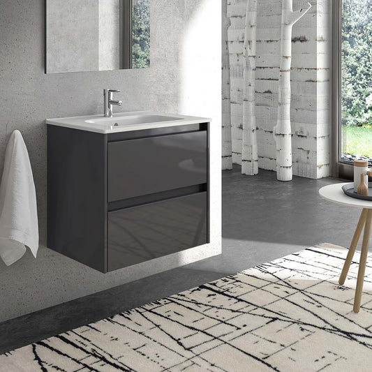Baden Haus "Glass" 24" Two-Drawer Wall-Hung Bathroom Vanity Cabinet with Top/Sink, Anthracite