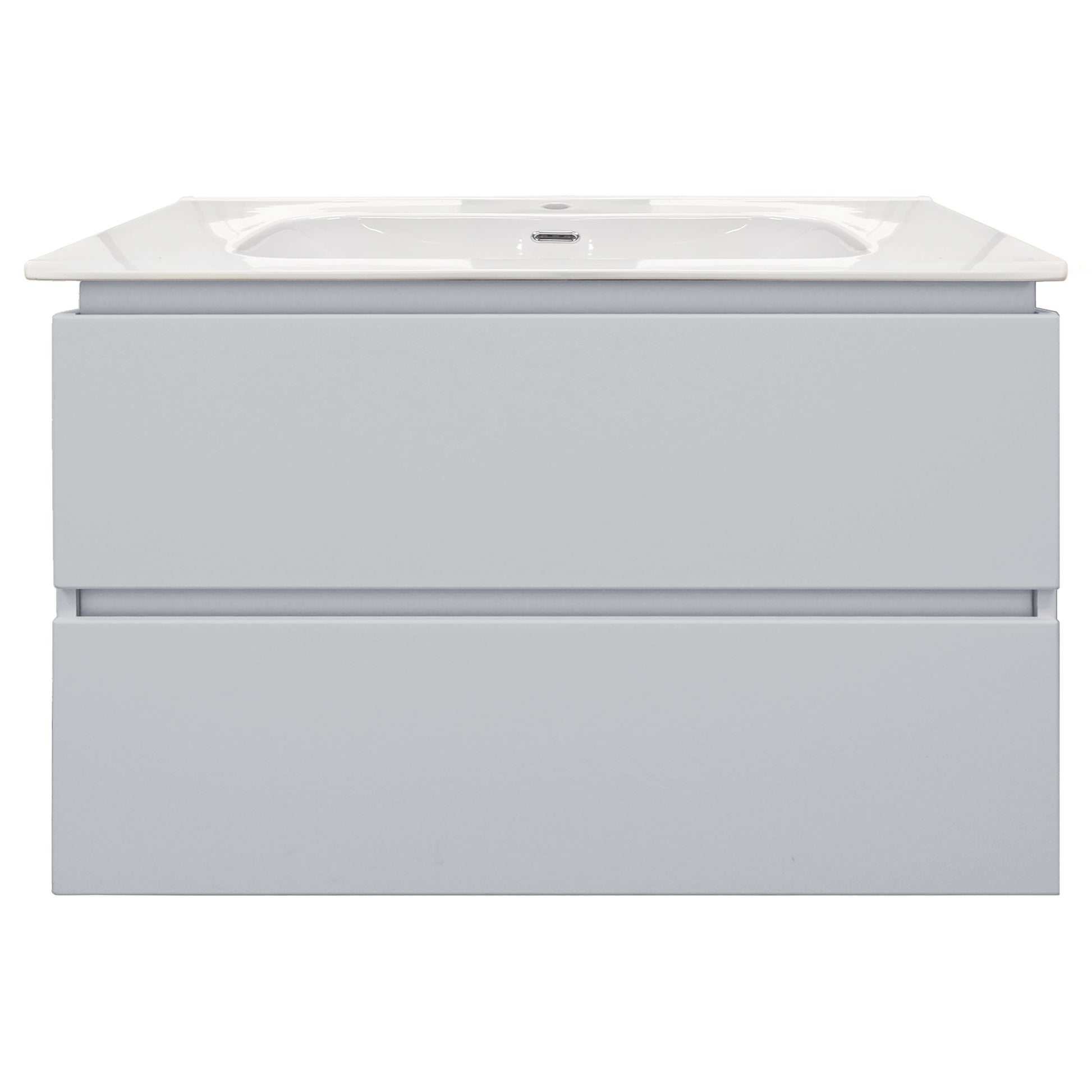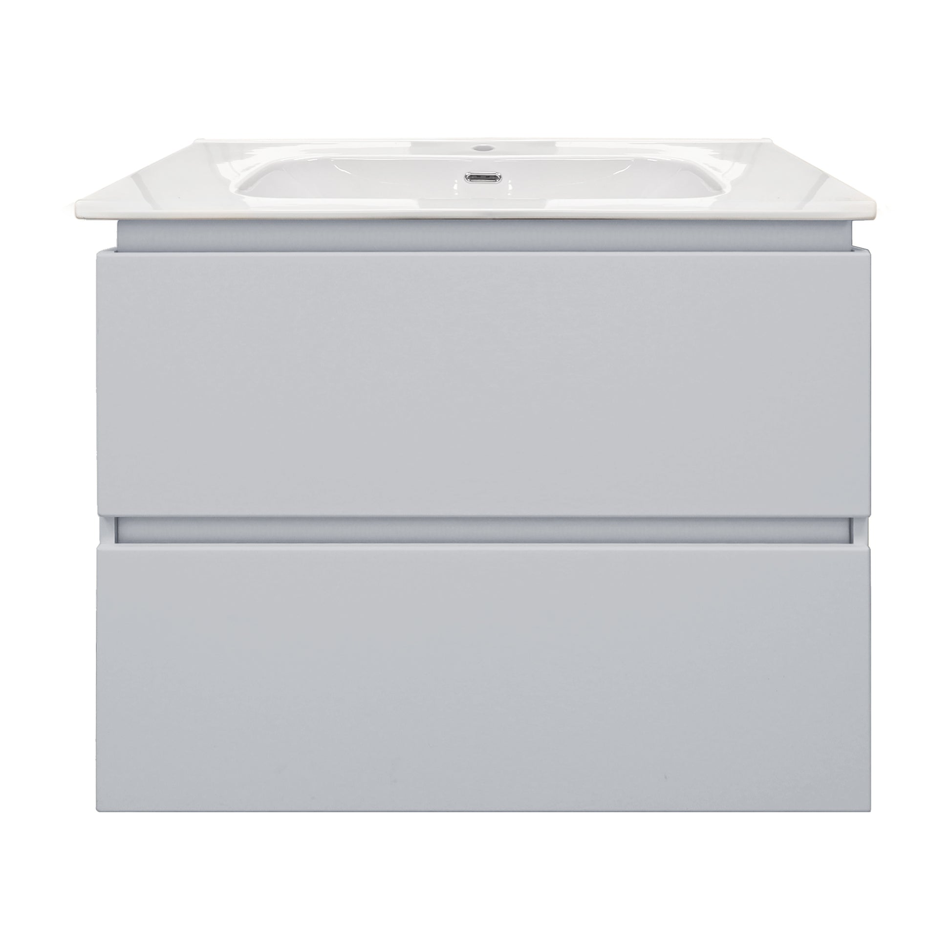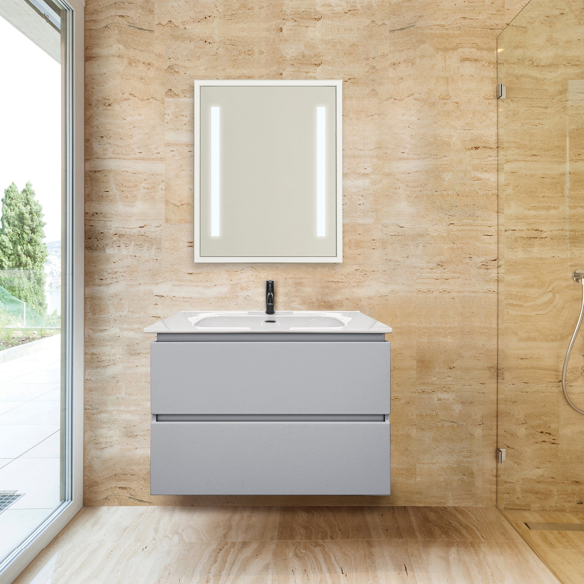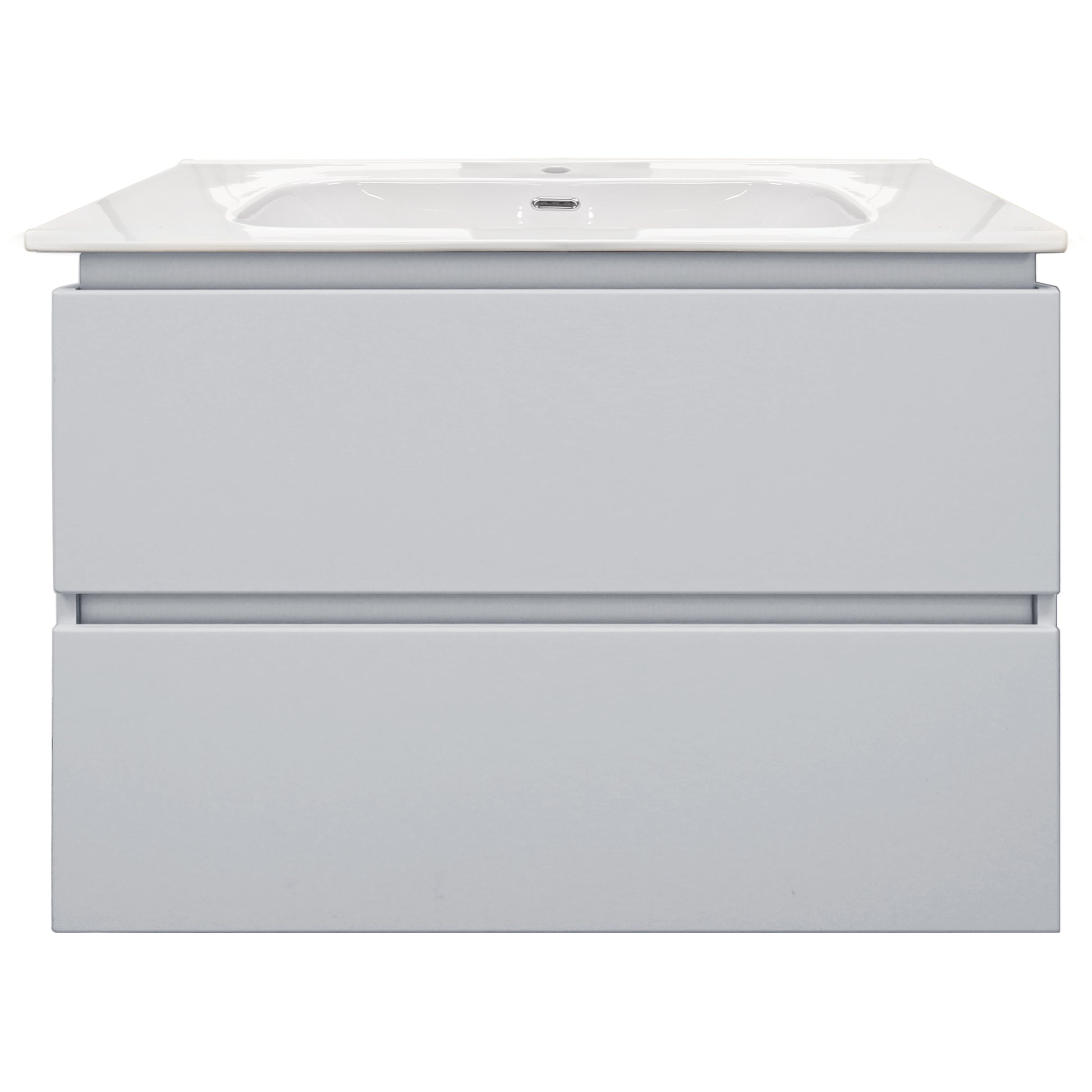 An ultra functional minimalist storage solution for any modern bathroom, the Avril vanity comes in three sizes varying by width. All feature a chic matte light gray finish, and two large soft-closing drawers for ultimate convenience. Comes with a matching ceramic sink ready for a single hole faucet.