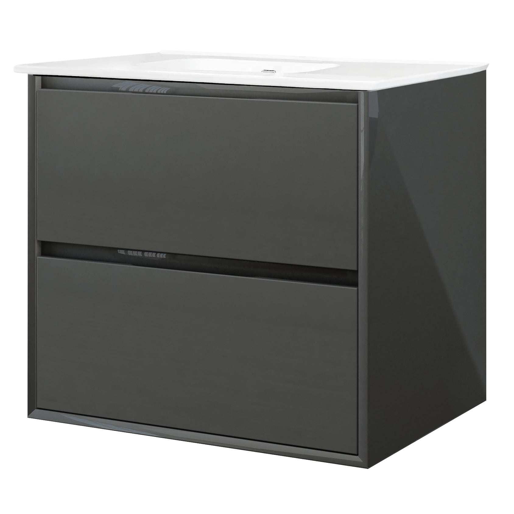 Baden Haus "Glass" 24" Two-Drawer Wall-Hung Bathroom Vanity Cabinet with Top/Sink, Anthracite