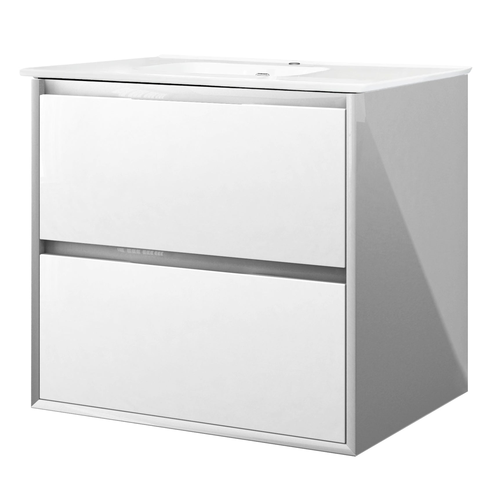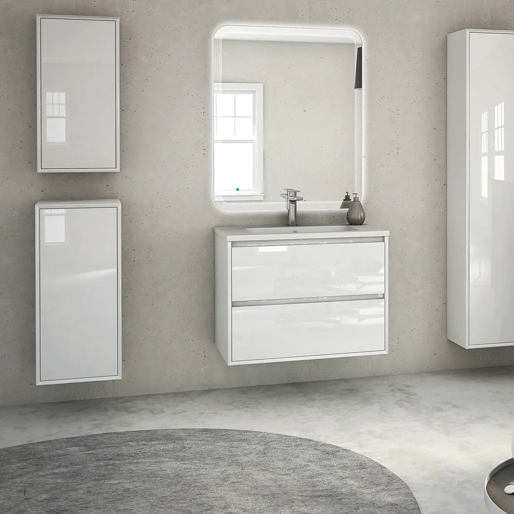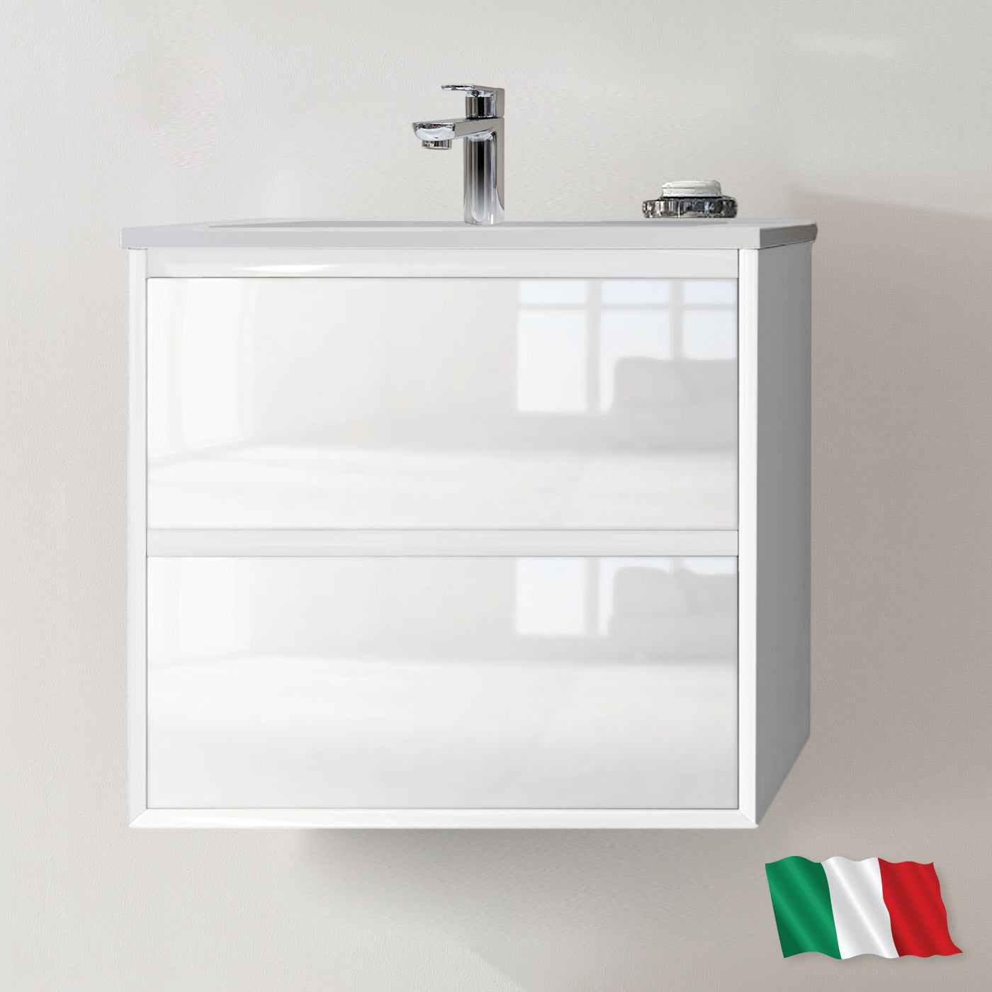 Baden Haus "Glass" 24" Two-Drawer Wall-Hung Bathroom Vanity Cabinet with Top/Sink, Gloss White