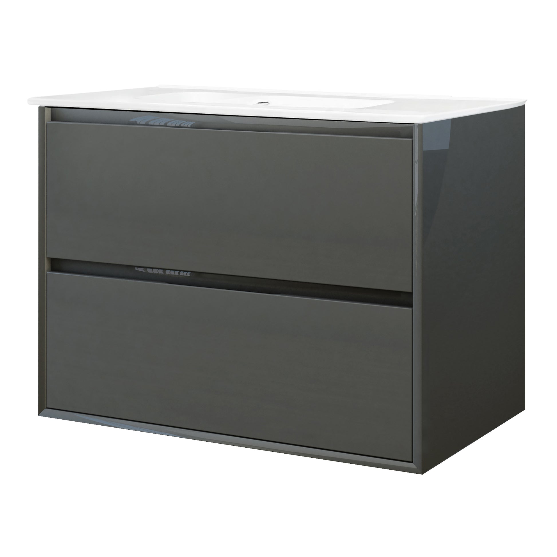 Baden Haus "Glass" 30" Two-Drawer Wall-Hung Bathroom Vanity with Top/Sink, Anthracite