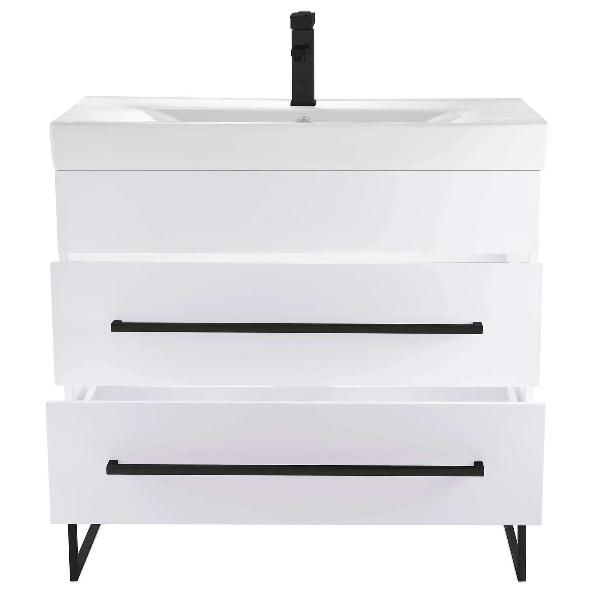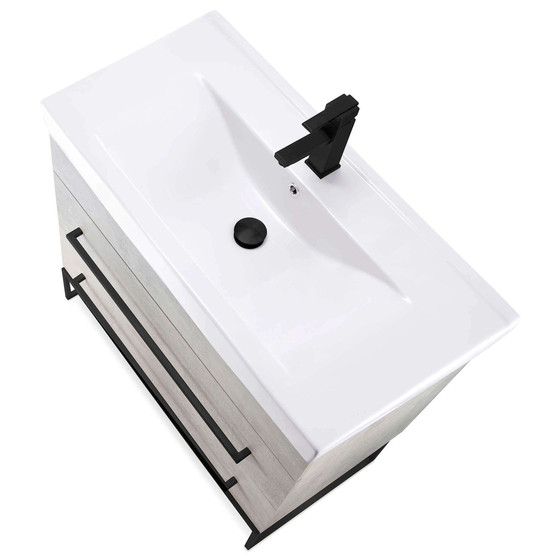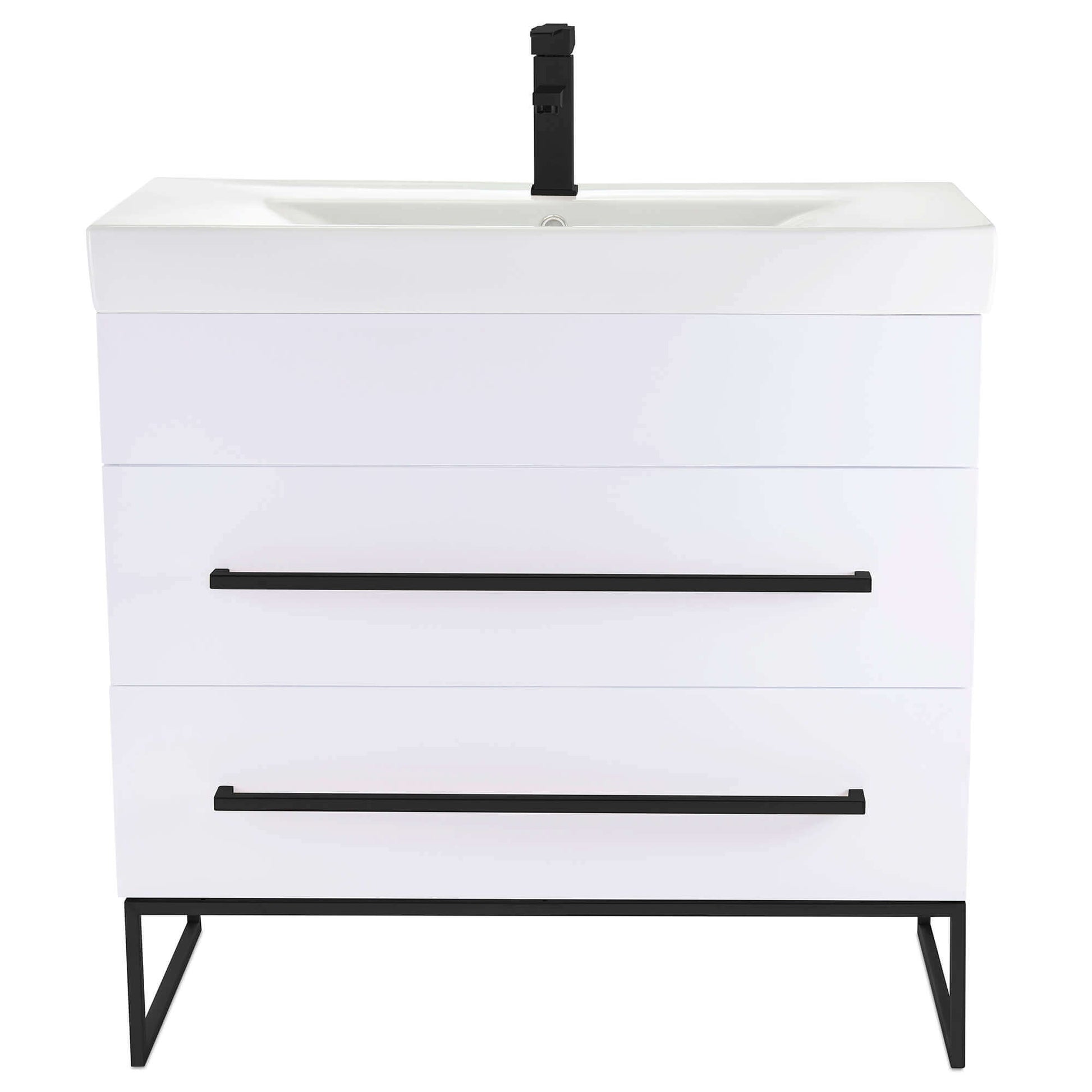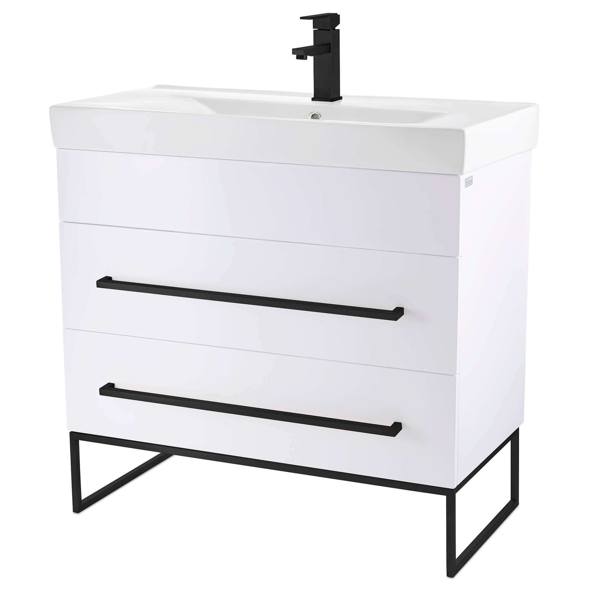 Ceramic sink included, faucet NOT included. Comes 90% assembled.