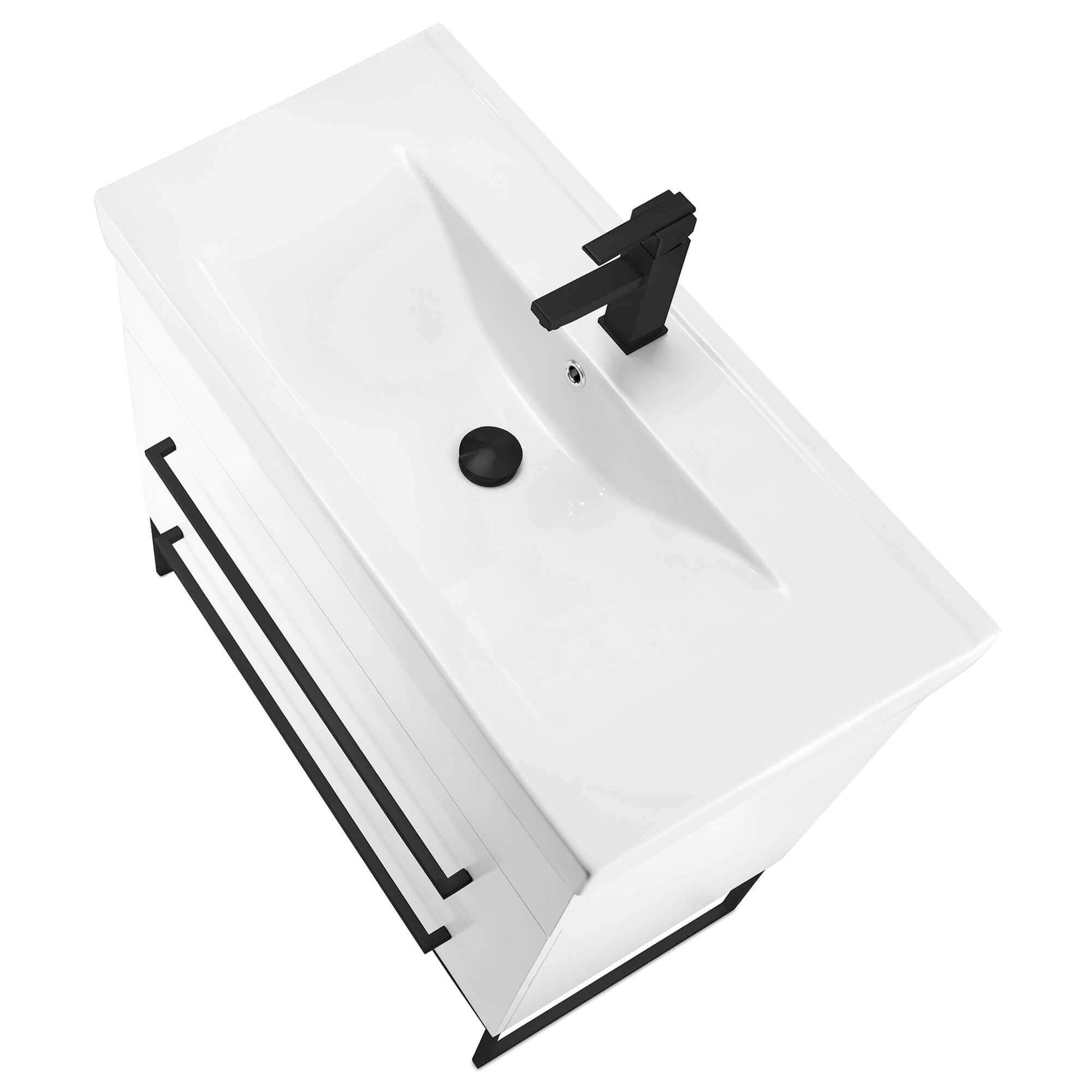 Great quality, durable vitreous china material (Ceramic) sink with a glossy stain resistant finish for everlasting performance. Features an overflow, yet sleek, prevents water leaks and spills without spoiling its elegance. For your convenience, we have predrilled a single faucet hole.