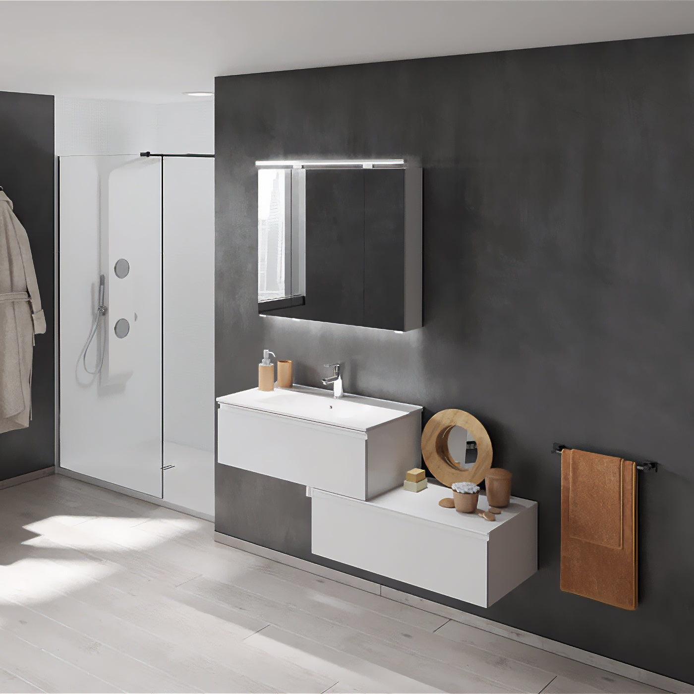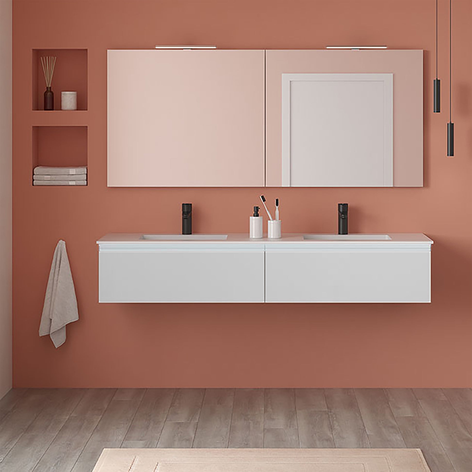 - Hidden hanging brackets with direct assembling system, great resistance and depth regulation