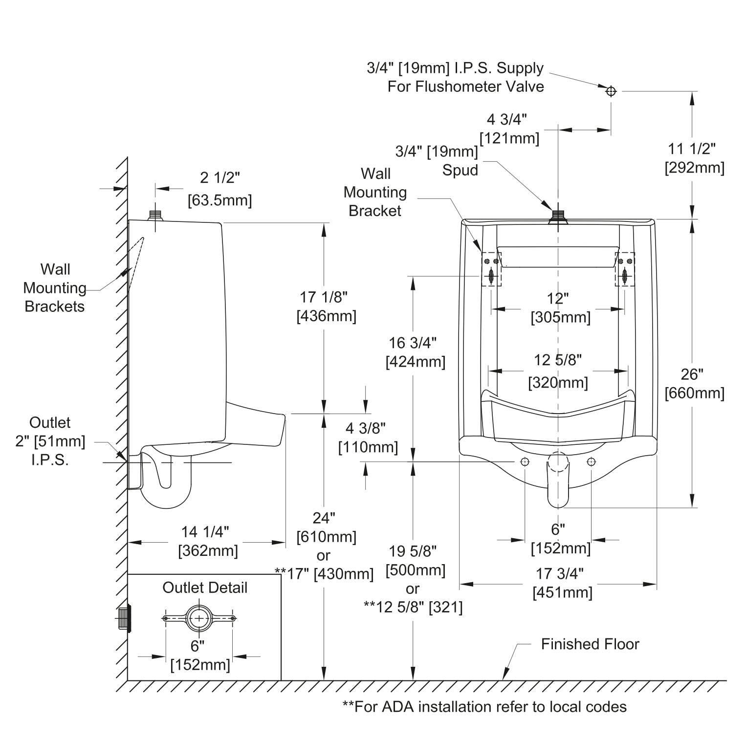 - Height (urinal only): 26"
